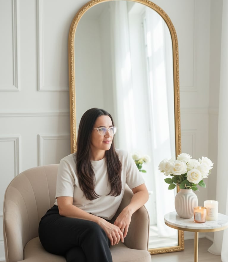 No meu mundo, o valor não se mede em quilates. Sou minimalista por convicção e rejeito a frieza do consumo rápido da fast fashion. Uma rosa colhida no jardim, imperfeita e entregue com amor, vale infinitamente mais do que um anel de diamantes sem alma. Acredito na intenção, no toque, na verdade. É por isso que o meu dia não passa sem acender uma vela e não acaba sem me conectar com o meu feminino: um momento sagrado, nem que sejam dois minutos, em que o creme toca a pele e volto para mim.